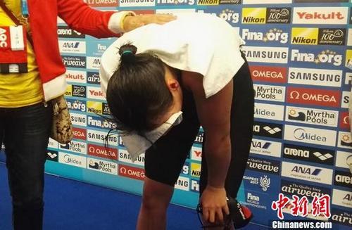 傅园慧赛后落泪。中新网记者 王婧 摄