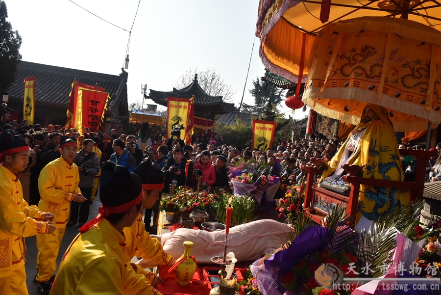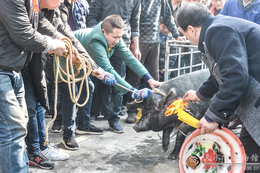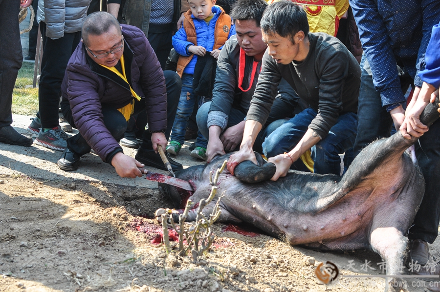 2月11日(农历正月十五日)下午,天水伏羲庙在先天殿月台前举行了领牲、献毛血仪式,近万名群众观看了这一传统的祭祀仪式。