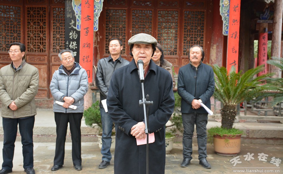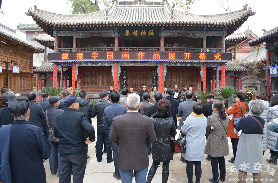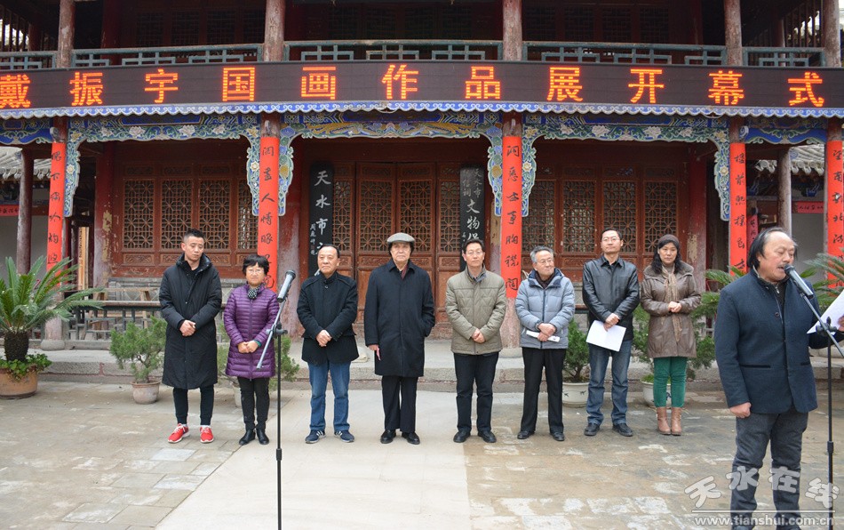 天水市委宣传部副部长赵子洲、原天水市政协副主席王钦锡、天水市书协副主席彭卫等相关领导出席了开幕式。天水市文化馆书记、馆长李靖在开幕式上讲话,天水市文化馆副馆长李博主持开幕式,中国水墨研究院院长戴振宇先生发言并介绍画展的情况。