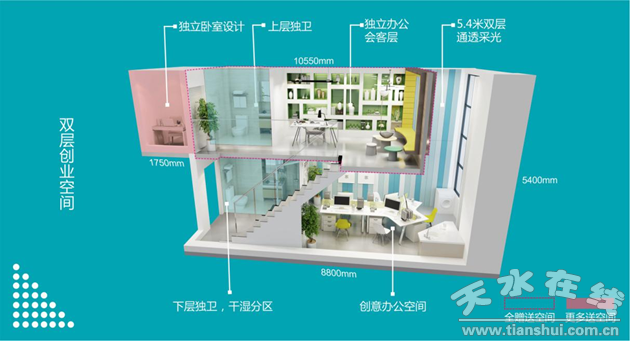 +5.4克拉LOFT共享青年社区作为天水房地产市场首批面世的LOFT产品,对于天水人民来讲,还是很新鲜的,在目前市场上也非常的稀缺。其空间高大而敞开,实际使用面积可达到销售面积的近2倍。而且,+5.4克拉突破了常规理念中LOFT户型的5.2米,提升到5.4米,使整个房屋空间更大,立体感受更上一个档次。在实际使用面积方面,也不仅仅拘泥于常规标准双层LOFT,而是每个户型都是买一层,送一层,更有额外赠送空间,送的更比买的多,拒绝一层不变,给你双倍价值!
