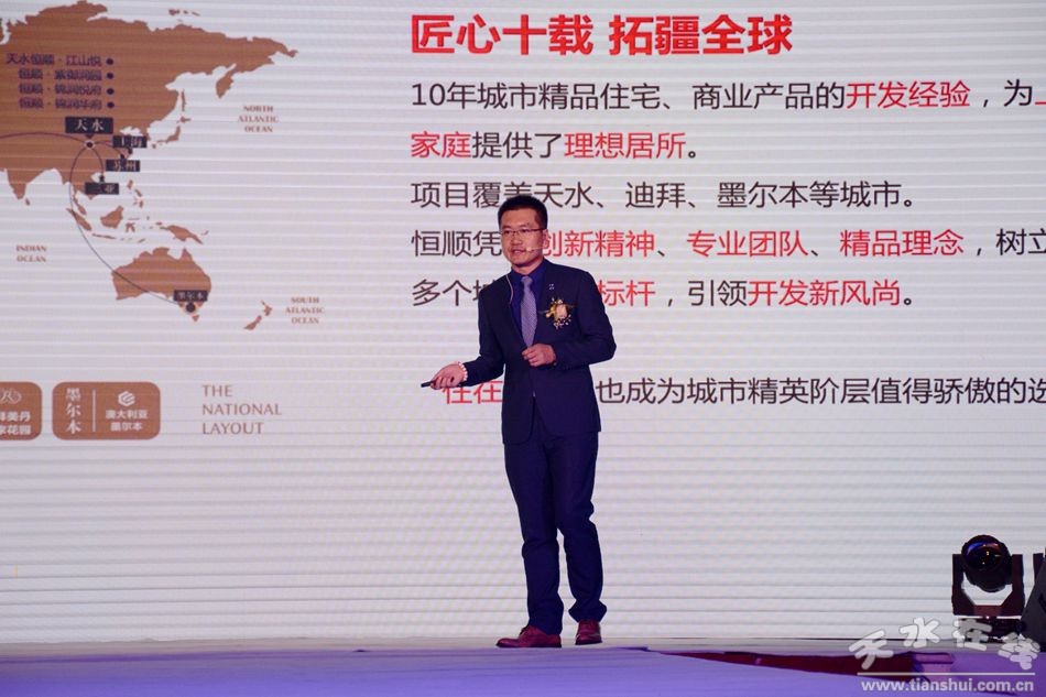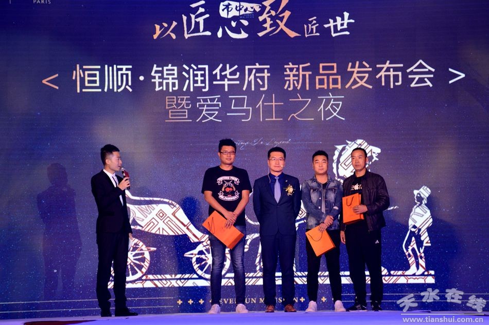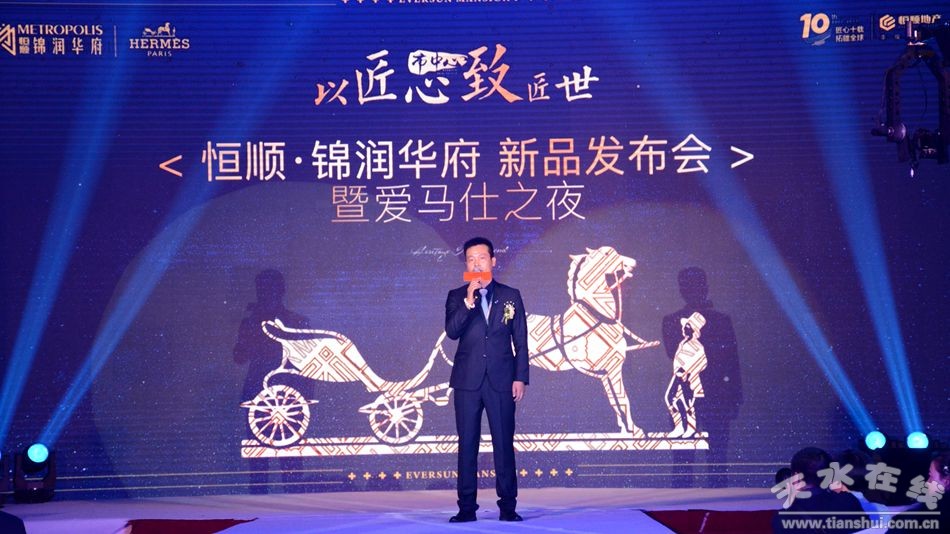 9月23日晚,“恒顺·锦润华府”新品发布会暨爱马仕之夜在天水宾馆成功举行。以匠心,致匠世。悦府之上,华府进献。恒顺·锦润华府自拿地成纪新城核心地之初便牵动着全城目光。伴随着大屏幕播放的恒顺地产纪录片,以匠心致匠世为寓意的倒计时震撼启动画面,发布会正式拉开帷幕,前行力量、恒顺掷地有声。