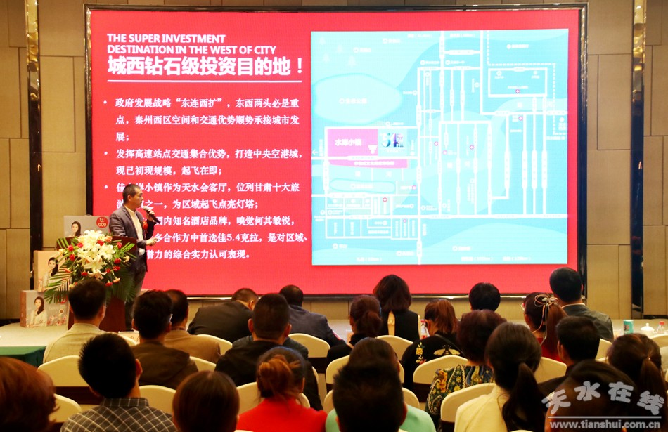 在开盘选房前,甘肃天褀集团营销总监佳·5.4克拉项目总经理孙建琥先生与途家斯维登集团尚晓飞先生分别就项目产品和合作运营做了详尽演讲。以打造天水钻石级投资地产为主旨的佳·5.4克拉,不仅配备有高智能、多共享等高价值配套,同时还独家与途家以及金螳螂·家达成战略合作。