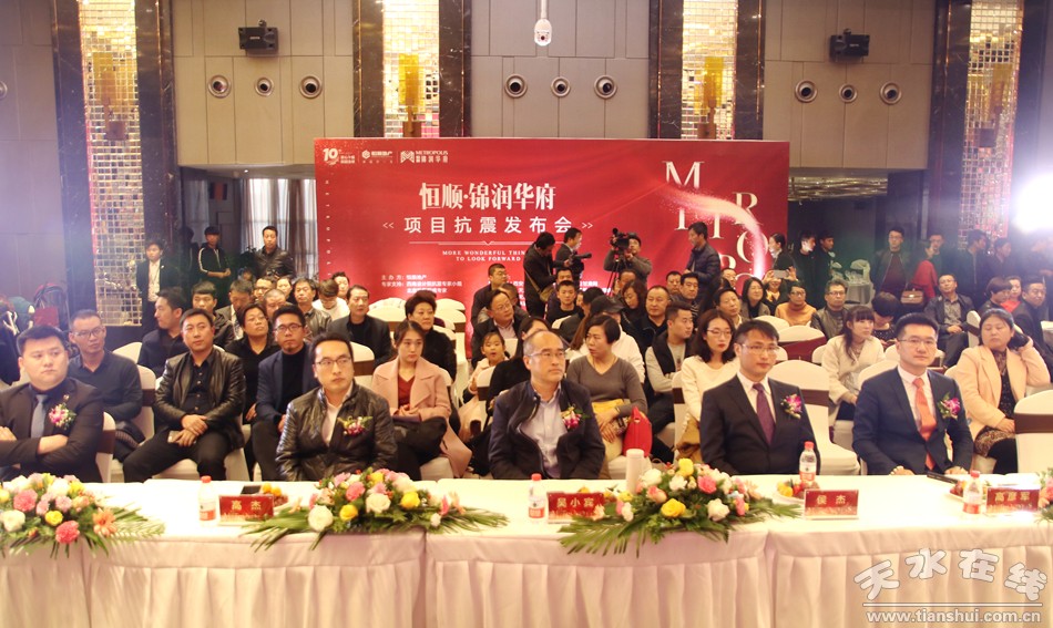 冬季的严寒未至,华府的火热已来!11月12日下午,恒顺·锦润华府项目抗震发布会在秦州区皇城酒店9层宴会厅震撼启幕,政府相关部门领导、北京抗震顾问专家和西南设计院等相关学者莅临华府,恒顺地产高层领导及省级市级地方等各级媒体记者出席发布会,备受全城瞩目!
