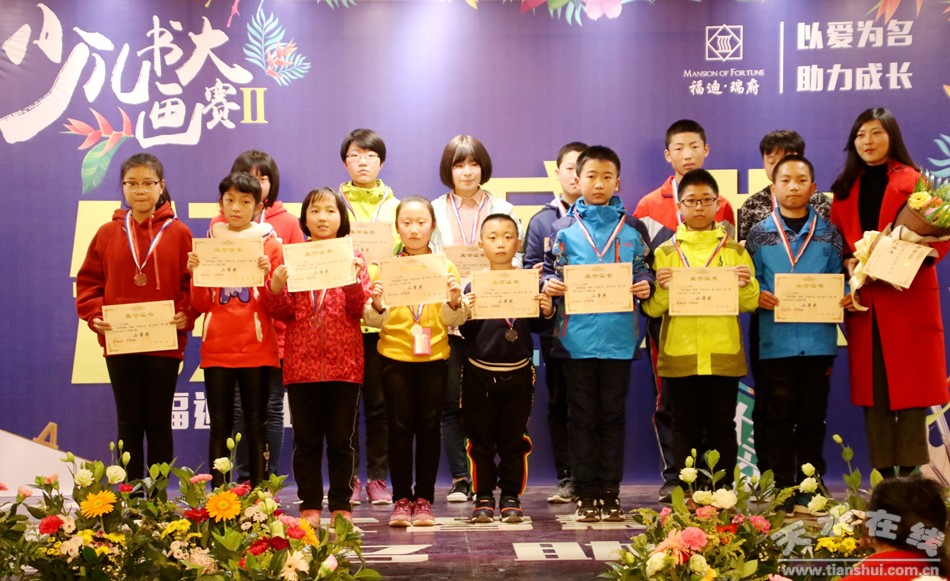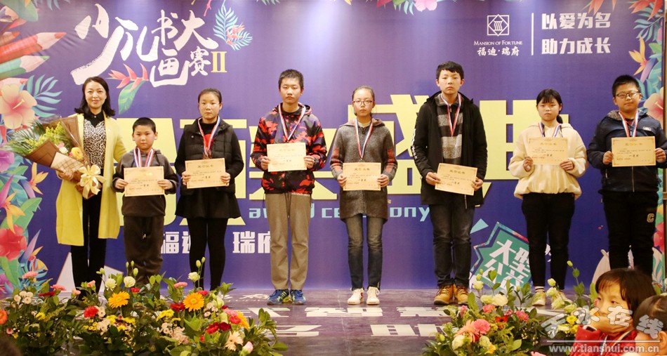 天水市美术家协会副主席、秦州区文化馆馆长甘肃省美协会员赵晖先生;教育部书画等级考试中心天水秘书处及全国青少年儿童文化艺术展评活动委员会天水秘书处秘书长段亚琴女士;天水市精神文明建设委员会办公室未成年人思想道德建设科赵彦君女士;中国书法家协会会员、天水市文联副主席、天水市书法家协会主席周宇春先生等代表受邀出席了此次颁奖活动并上台致辞,此外数百名家长和天水市民也都齐聚福迪·瑞府,共同见证近千名参赛小选手的逐梦之旅!