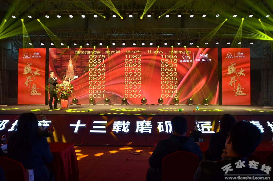 开盘仪式中,秦都集团、甘肃设计院、嘉通集团、格林威至、天亿国际、仲量联行等权威业界“大咖”纷纷到场致辞,并表示了对天水秦都·褐石公馆的“放心”与“推崇”,现场同时用手掌logo启动开盘仪式。在沙画、杂技、独唱、群舞等歌舞相伴的演出中,上千名购房市民等待摇号,抢购80平方米——140平方米褐石公馆的全能户型。