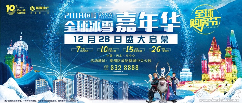 在这世上,遇到雪,遇到冰都不稀罕,稀罕的是遇见一场盛大的“冰雪盛宴”!圣诞将至、元旦将至,2018年新年伊始,大恒顺迎来了一场前所未鉴、万众期待的超阵容“冰雪嘉年华”——2018恒顺地产全球冰雪嘉年华,12月26日,不见不散!