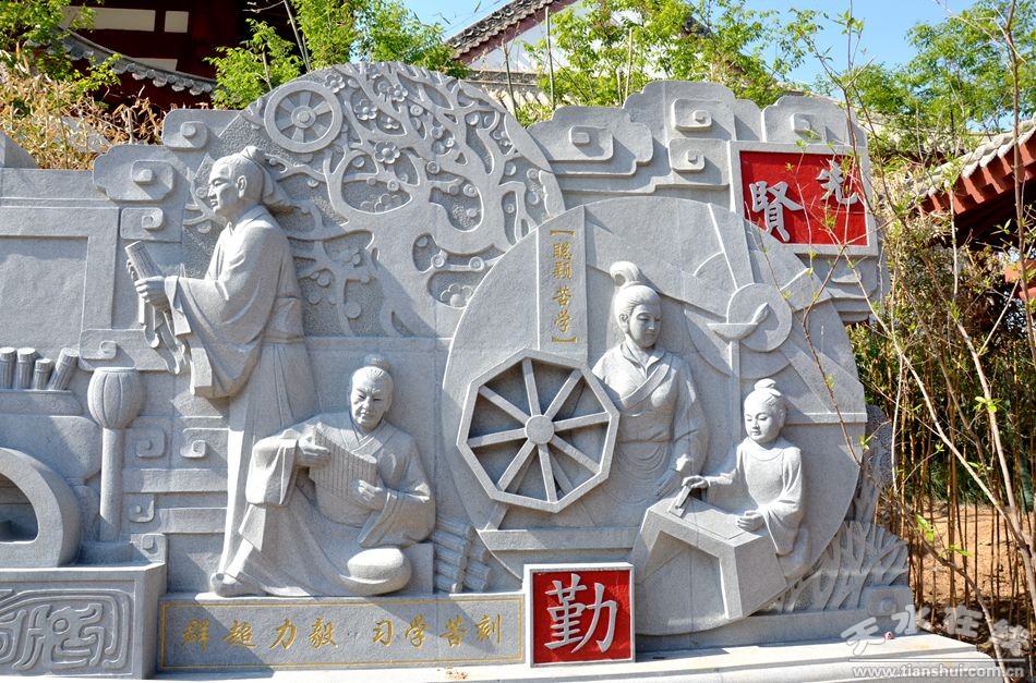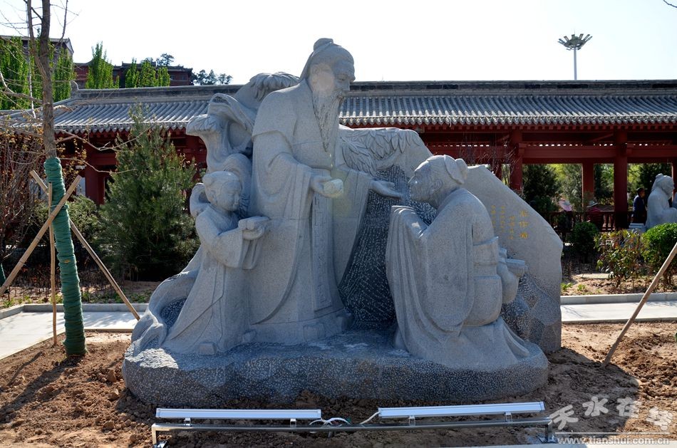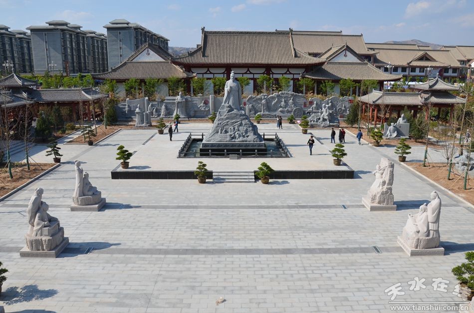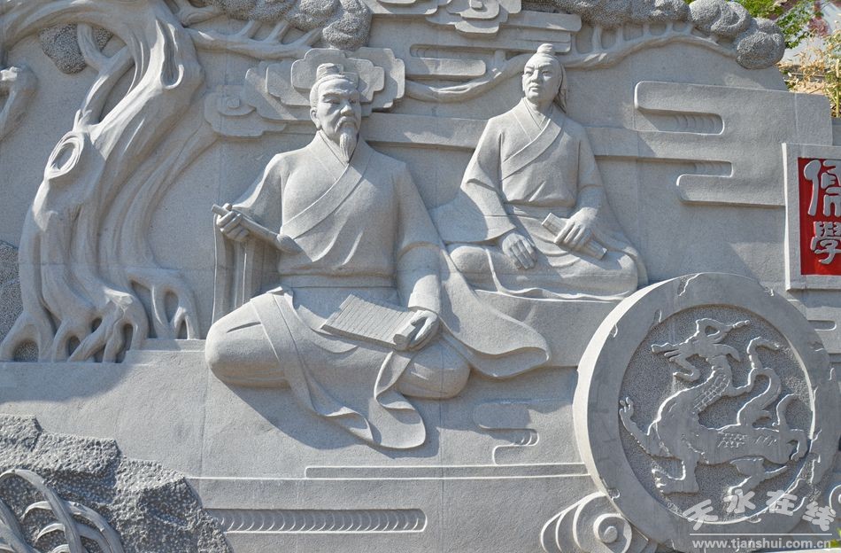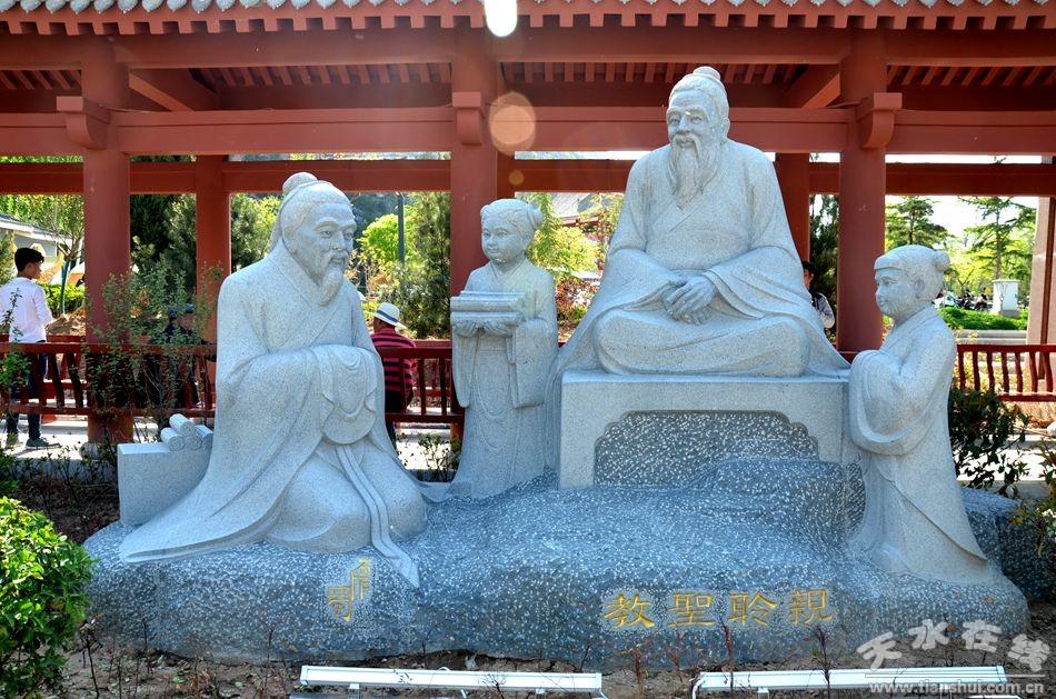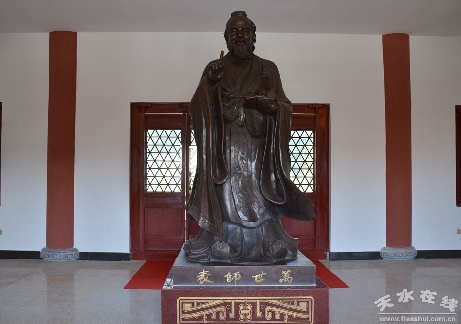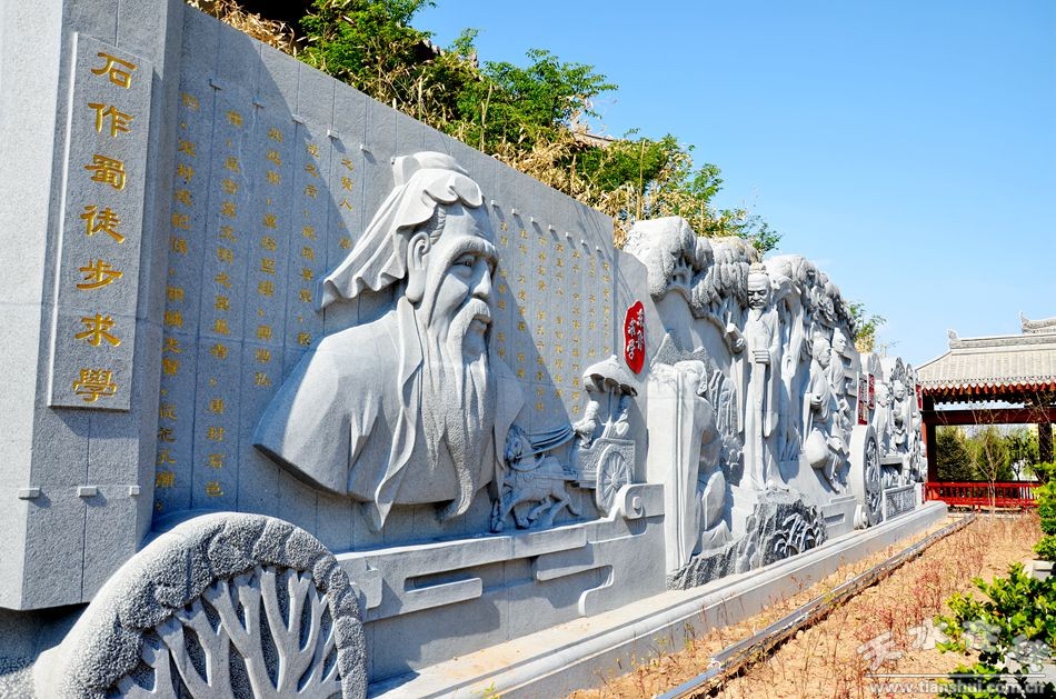 贾忠慧指出,孔子是儒家学派的创始人,伟大的思想家和教育家,是世界文化伟人之一。先贤石作蜀以教化秦陇为念,不避数千里之遥,投奔孔子门下,孜孜不倦,亲受教泽,成为孔门七十二贤人之一,后传承儒学,文泽乡里。姜维立志兴复汉室,深得诸葛亮器重,成为蜀国后期的中流砥柱,为完成诸葛丞相遗志,六出祁山,九伐中原,其英勇忠烈,家喻户晓。孔子和石作蜀,诸葛亮和姜维,他们的师徒情谊,早已成为历史的美谈,也是甘谷历史文化卷册中值得骄傲的一页。崇文苑和尚武苑,以艺术的形式,再现了这段历史的千古佳话,成为人们深入了解三位伟人最形象、最直观、最富艺术感染力的嘉苑。