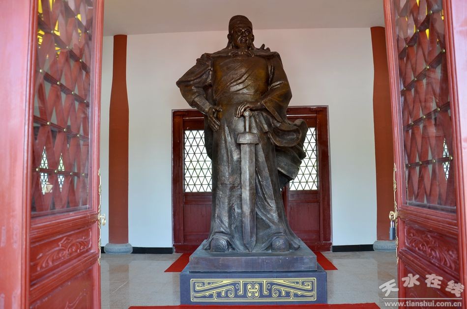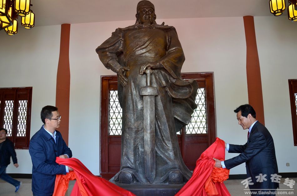 (天水市委宣传部副部长马立新和甘谷县委副书记、县长申君明为姜维圣像揭幕)