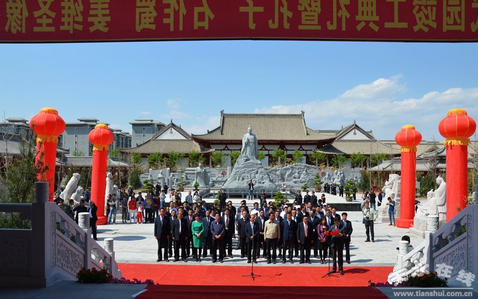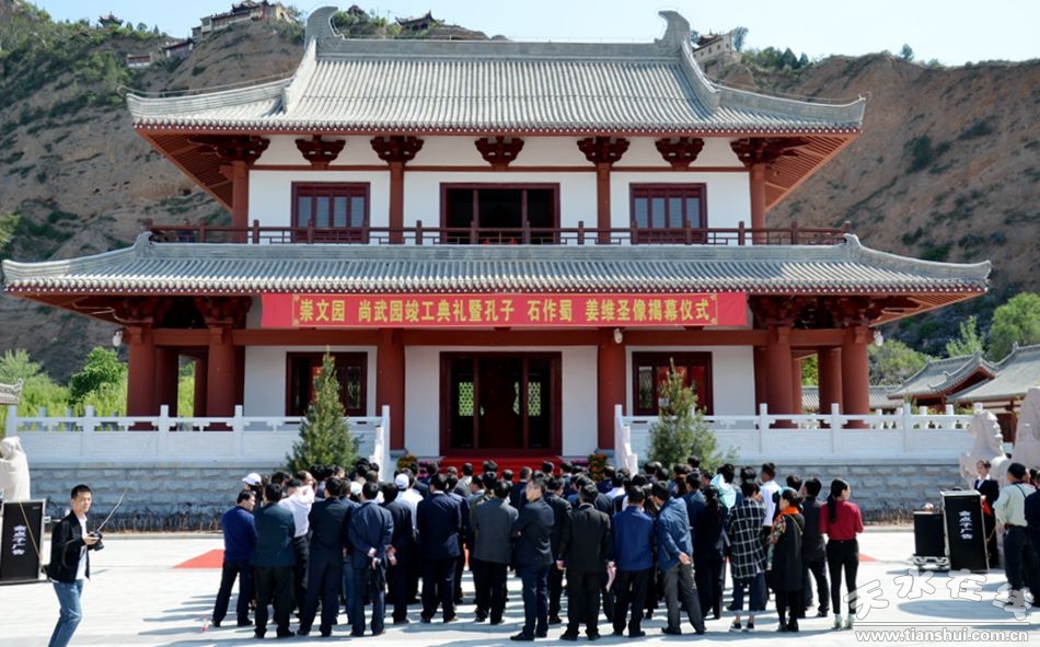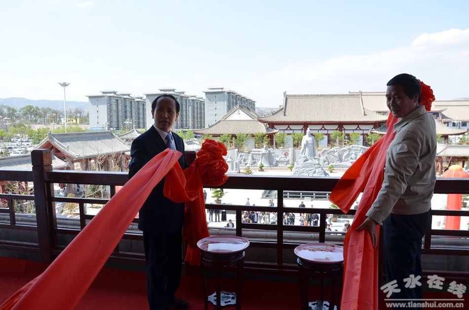 (天水市文化和旅游局局长仙松涛和甘谷县委书记贾忠慧为孔子圣像揭幕)