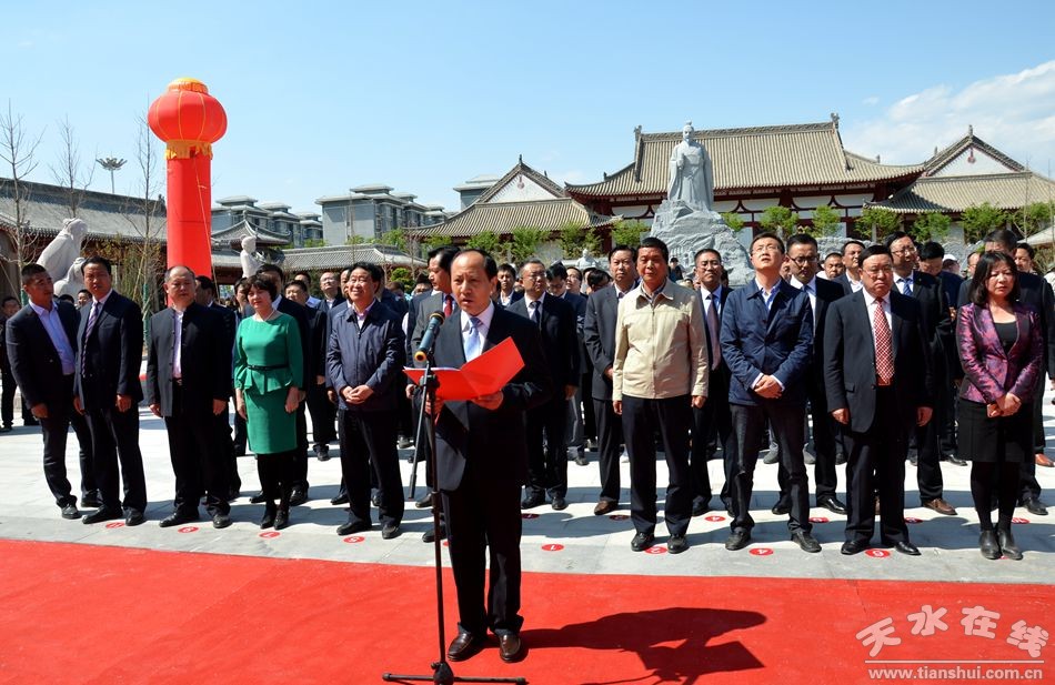 4月28日,甘谷县隆重举行崇文苑、尚武苑竣工典礼暨孔子、石作蜀、姜维圣像揭幕仪式。市委宣传部副部长马立新,市文化旅游局局长仙松涛、副局长杨春晓、李晓敏,市政府研究室主任董小明,甘肃电视台艺术总监高国强;甘谷县委书记贾忠慧,县委副书记、县长申君明,县政协主席马骥等县四大组织领导出席仪式。各乡镇、部分县直部门单位干部职工及各界群众代表参加仪式。