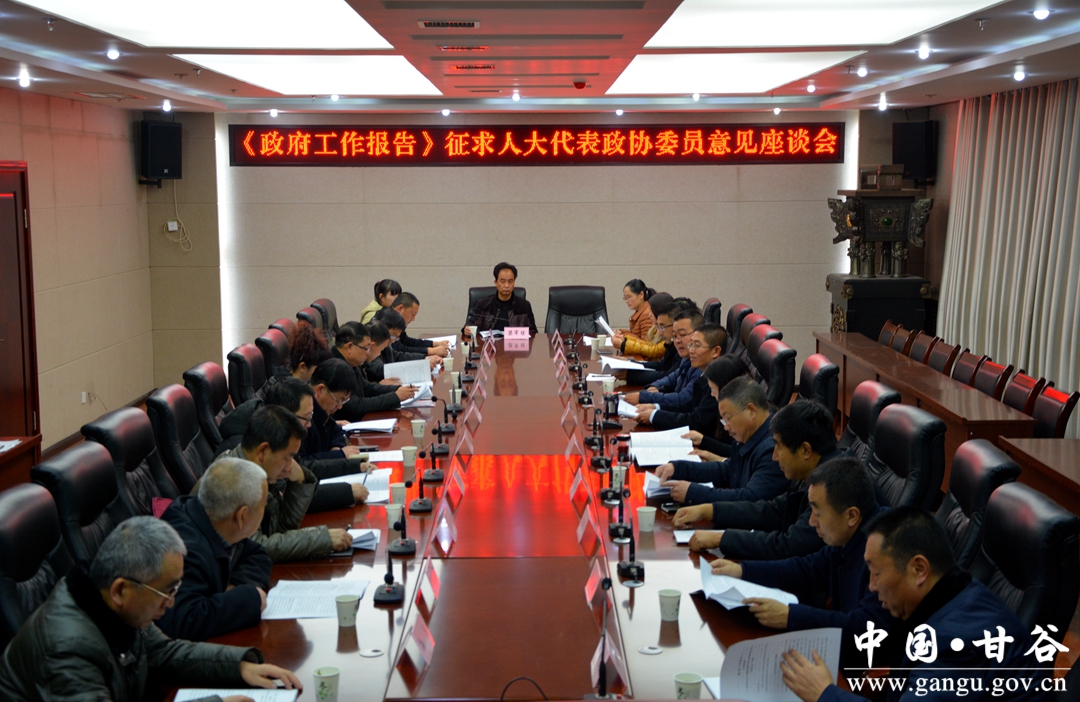 12月14日,甘谷县召开《政府工作报告》人大代表政协委员征求意见座谈会。副县长牛武军、高丽出席会议,部分人大代表、政协委员参加会议。