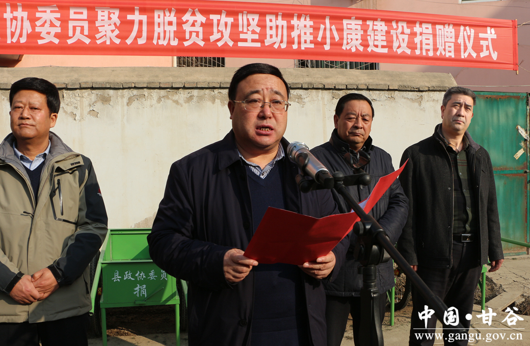 马骥代表县政协向心系群众、情注扶贫的各位政协委员表示崇高的敬意和衷心的感谢。他指出,近年来,全县上下聚焦精准脱贫主攻方向,全面落实“1+18”扶贫政策措施,脱贫攻坚取得了显著成效。县政协各参加单位和广大政协委员聚力脱贫攻坚,积极履职尽责,发挥了应有的作用。特别是参与此次捐赠活动的工商联界、经济界等界别的委员把自己的事业与人民的需求结合起来,聚焦精准脱贫,开展对口帮扶,支持帮扶村改善基础设施,帮助贫困户解决实际困难,充分彰显了中华民族的传统美德,生动践行了社会主义核心价值观,全面展示了新时期政协委员的精神面貌,为全体政协委员树立了榜样,作出了示范。