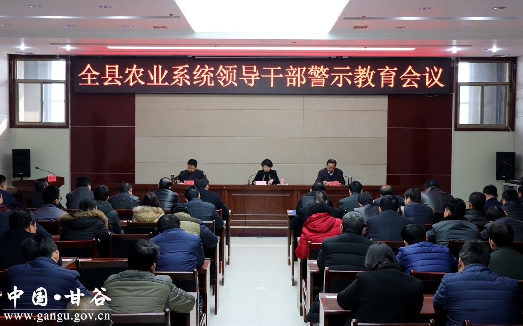 12月21日,甘谷县召开农业系统领导干部警示教育会议。县委常委、纪委书记谢辉,副县长郭中校、杨宏出席会议;县委农工部,县扶贫办、农业、林业、畜牧、农机、果业、水务、水保、农综办等10个部门单位的领导班子成员、股室负责人和财务人员参加会议。