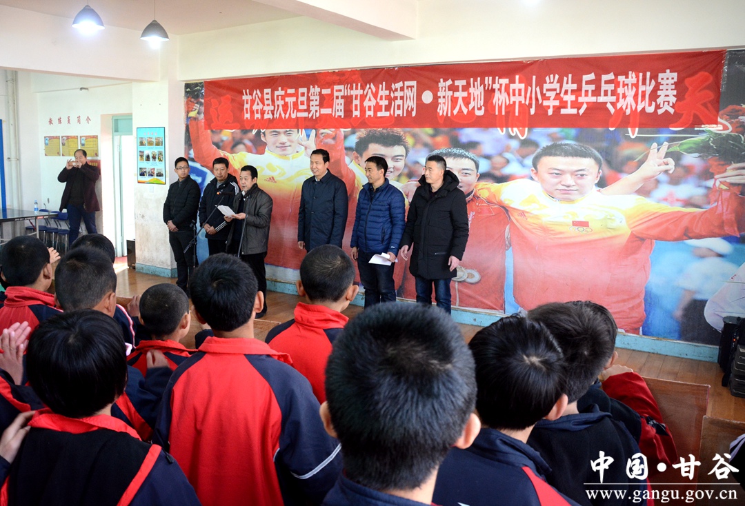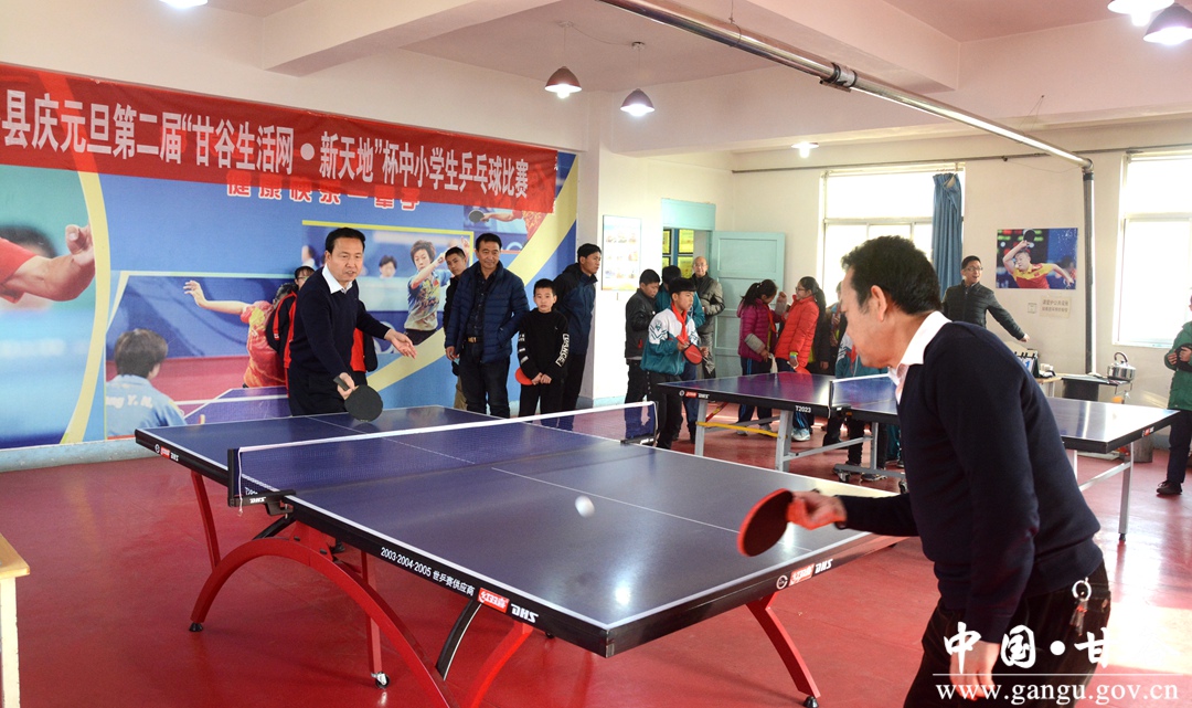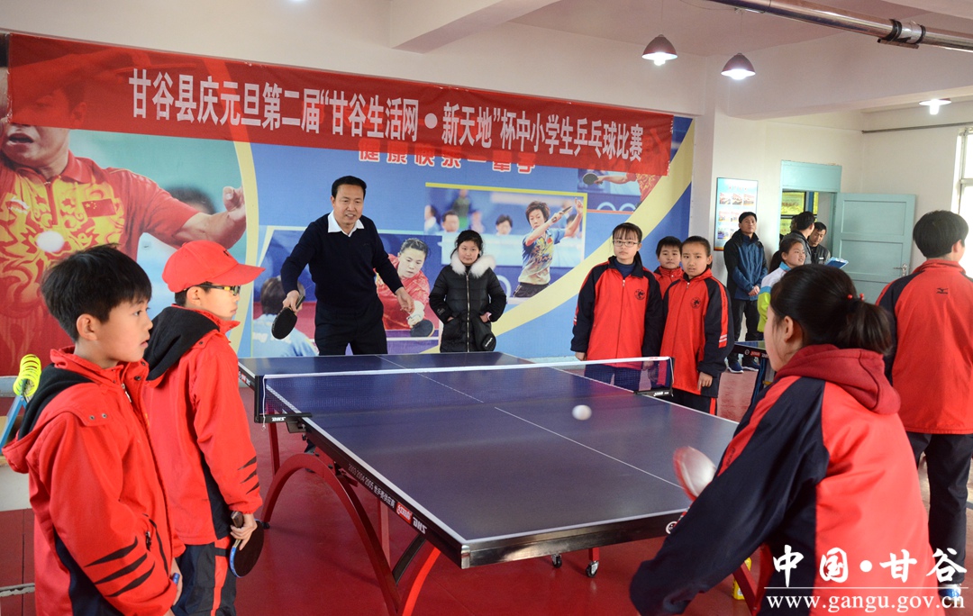 12月27日,甘谷县举办庆元旦第二届“甘谷生活网·新天地”杯中小学生乒乓球比赛,县委常委、宣传部长张庆元出席开幕式并讲话,县教体局及全县中小学校参赛选手参加。