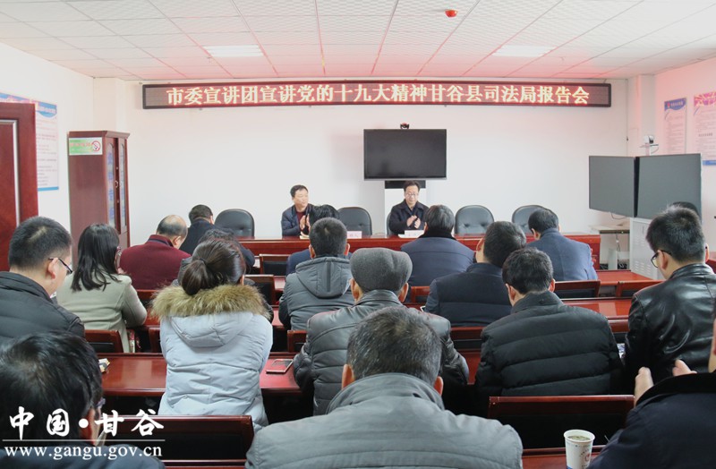 近日,天水市委宣讲团第四宣讲组深入甘谷县卫计局、农业局、文广局、司法局宣讲党的十九大精神。