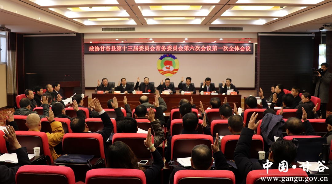 12月28日,政协甘谷县第十三届委员会常务委员会第六次会议召开第一次全体会议。县政协主席马骥主持会议,县政协副主席董成斌、陈旭、田小龙、郑建子、马清平,秘书长郭长胜出席会议,县政协十三届常务委员及各组召集人参加会议。
