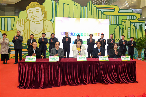 12月29日,东丽区对口帮扶县旅游资源推介会盛大召开,天津市政府副秘书长李森阳,区委书记尚斌义、副区长杨灏及承德市、甘南藏族自治州、临潭县、兰州市皋兰县等市(州)县有关领导出席。甘谷县委常委、宣传部长张庆元,副县长牛武军、朱德勇参加并推介甘谷白家湾乡高山红苹果、大漠行麻鞋、全录王辣椒、花椒等特色农产品。会上,甘谷县分别与京东集团、华润集团、中汽世纪旅行社、天津甘肃商会签署了《战略合作意向书》。