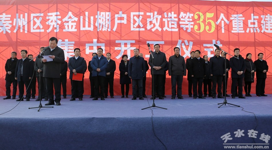 据悉,今天秦州区集中开工的秀金山棚户区改造等35个重点建设项目,总建筑面积120万平方米,总投资96亿元,涉及棚户区改造、房地产开发、旅游开发、易地搬迁、教育医疗、城乡基础设施建设等多个领域,既突出了投资拉动、基础先行,又体现了结构调整、产业支撑,对于激发项目投资活力,示范带动项目建设,推动经济企稳向好发展具有十分重要的意义。