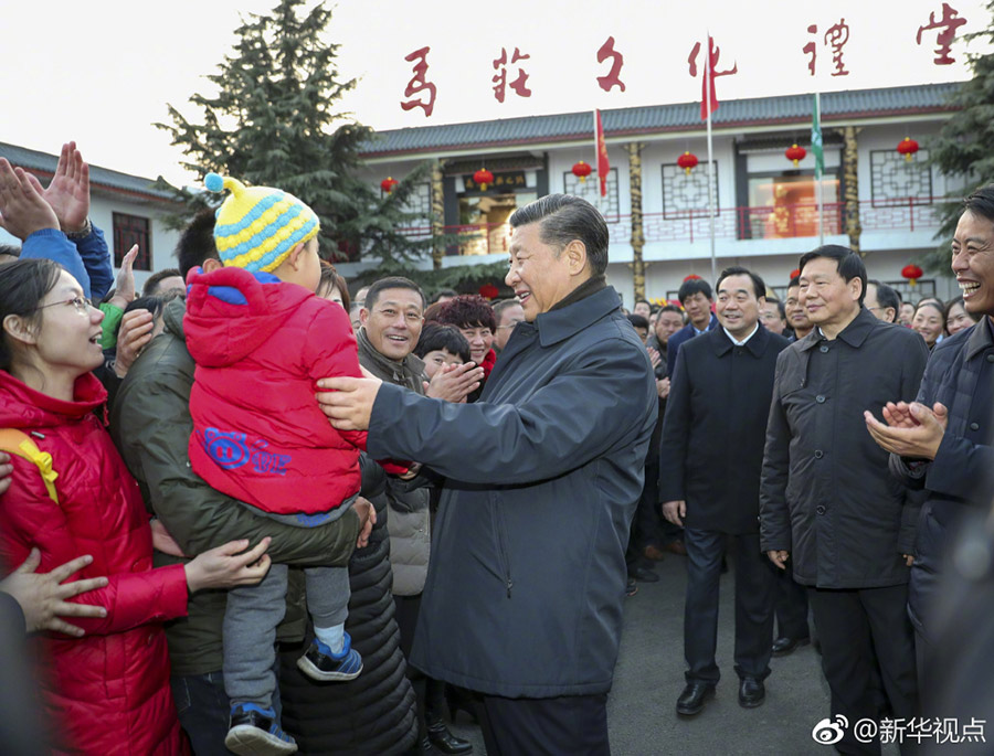 马庄村的村民乐团远近闻名。习近平走进村文化礼堂,饶有兴致观看了他们为宣讲十九大精神排练的一段快板。习近平说,加强精神文明建设在这里看到了实实在在的落实和弘扬。实施乡村振兴战略不能光看农民口袋里票子有多少,更要看农民精神风貌怎么样。