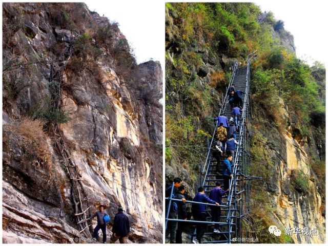 大凉山“悬崖村”“天梯”今昔对比(来源:新华视点微博)