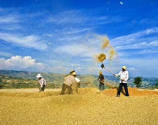 7时32分,雄伟的天安门城楼上,8名解放军军乐团礼号手齐声吹响升旗号角,升旗仪式正式开始。