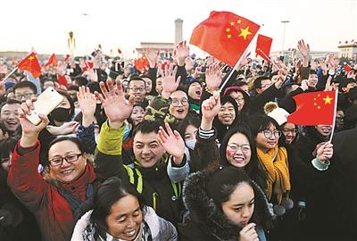 “再坚持一下,还有30分钟。”太阳升起前气温低至-5℃至-6℃。在等待的人群中,大家相互鼓励。7时25分,“中国,加油!”不知道谁在队伍里喊了一句,紧接着,一阵又一阵的欢呼声,一浪高过一浪,直到升旗仪式开始。