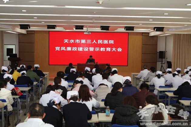 为深入贯彻党的十九大精神,把握全面从严治党新内涵,落实管党治党新要求,切实加强党的纪律和纪律建设,进一步引导我院党员干部职工坚定理想信念,增强规矩意识,正确使用权力,筑牢思想防线、道德底线、纪律红线,持续巩固和发展来之不易的良好政治生态,12月26日下午,市三院召开了党风廉政建设警示教育大会。院党委班子成员、中层干部、党员、职工共200多人参加了报告会。
