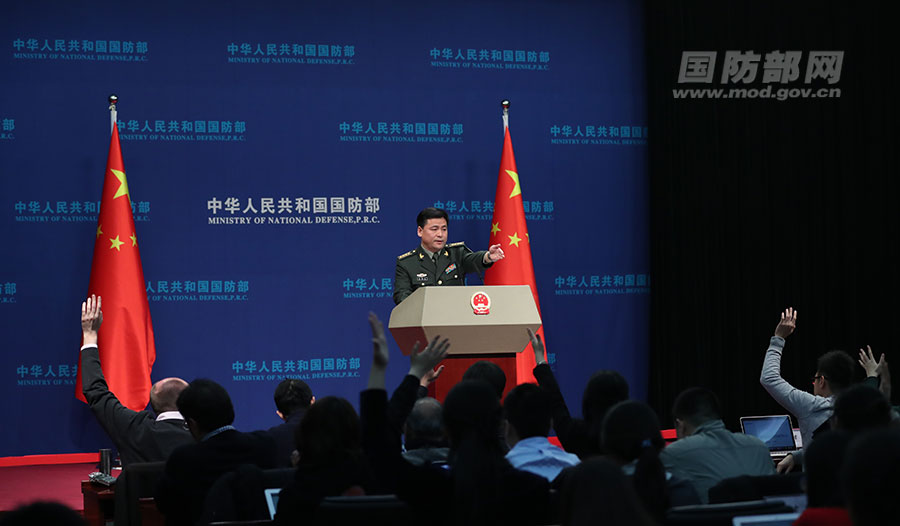 12月28日下午,国防部举行例行记者会,国防部新闻局副局长、国防部新闻发言人任国强大校回答记者提问。李晓伟 摄