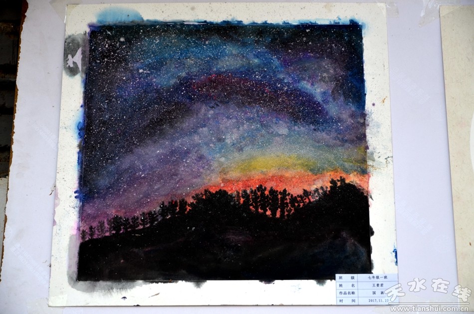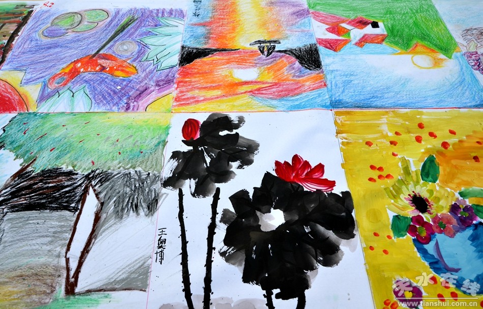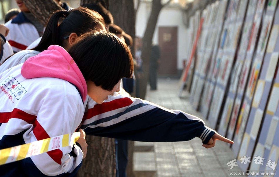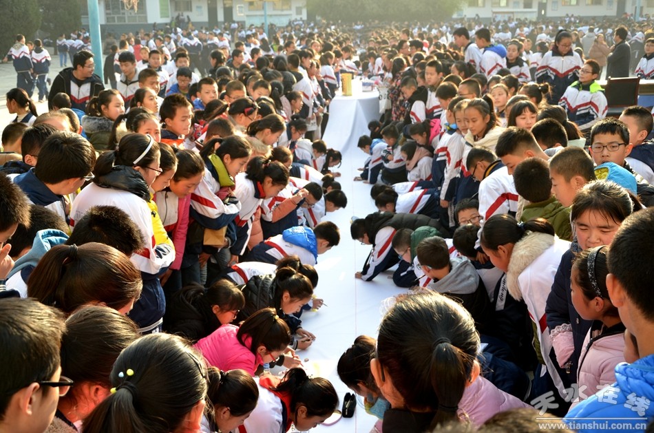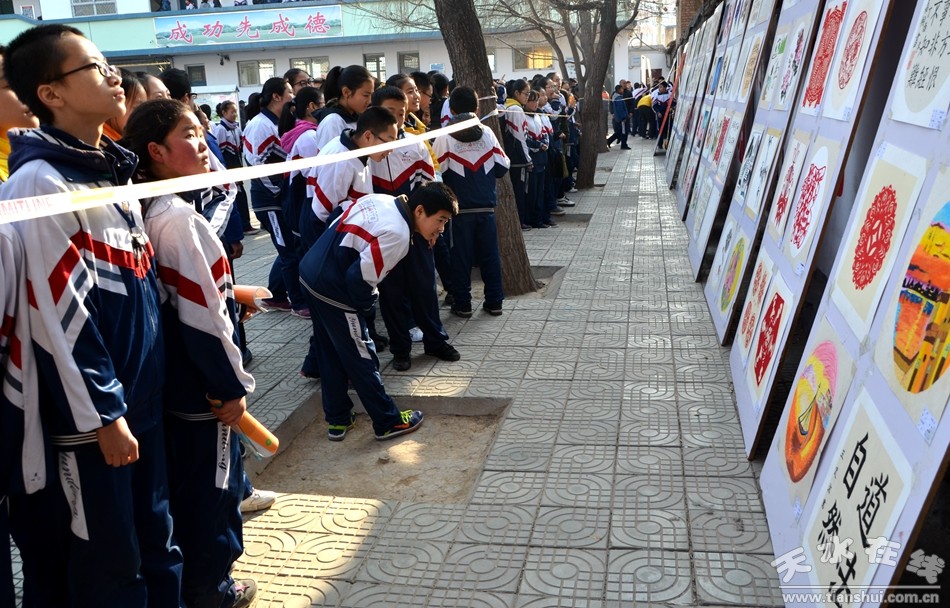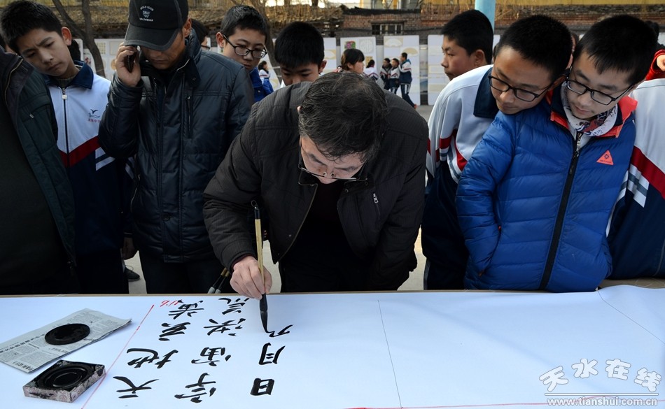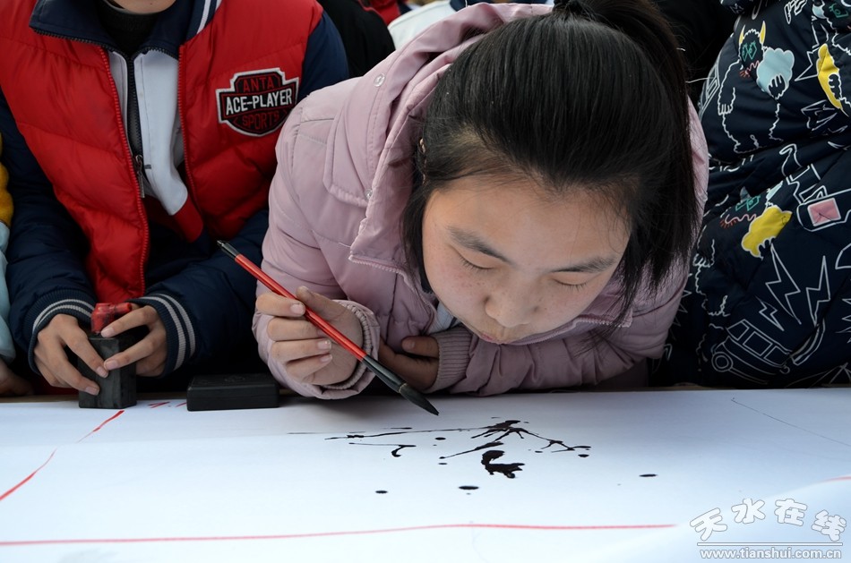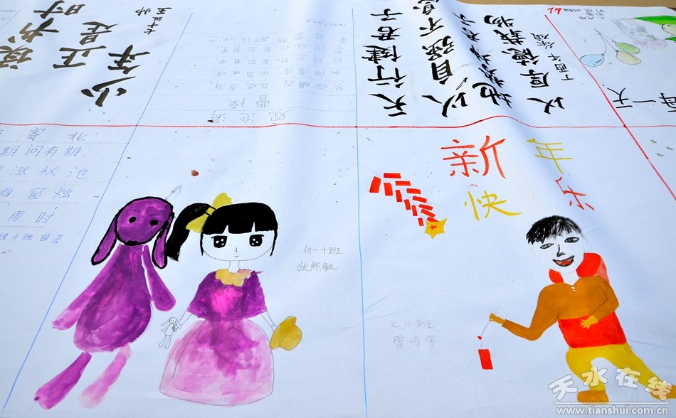 12月27日,天水市麦积区龙园中学300余名师生现场作画,书法、国画、水粉、素描等形色各异的艺术创作,铺满了200米长的画卷。