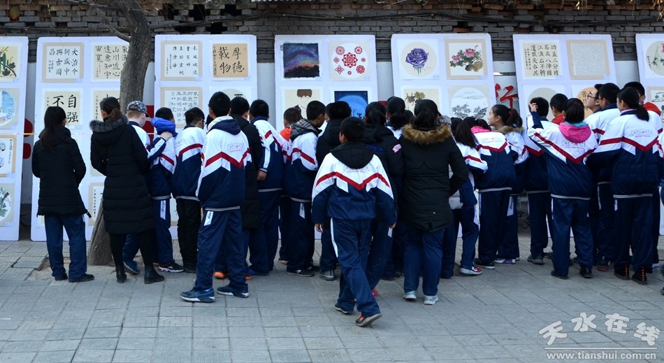 除现场百人作画活动外,龙园中学在校园中展出的150余幅书画作品,也引发了全校师生“鉴赏美”的围观。据介绍,展出的作品是在全校收集的2000多幅师生画作中筛选而出的,校方希望此次书画绘展,能给每一位师生带去一份特别的新年祝福。