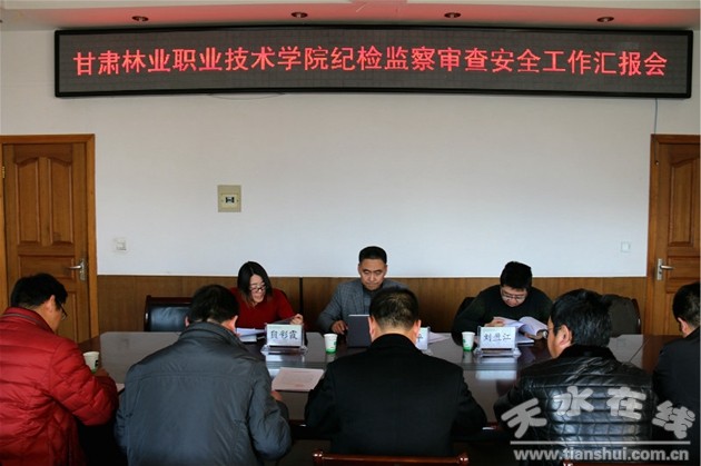 12月27日,由省纪委派驻省教育厅纪检组正处级纪律检查员雷专平、省纪委第六纪检监察室主任科员刘盈江、省纪委派驻省教育厅纪检组副主任科员貟彩霞组成的检查组,莅临甘肃林业职业技术院检查指导纪检审查安全工作。党委委员、副院长罗广元,纪委副书记、审计监察处处长张文彧,纪委委员及审计监察处工作人员参加了此次检查。