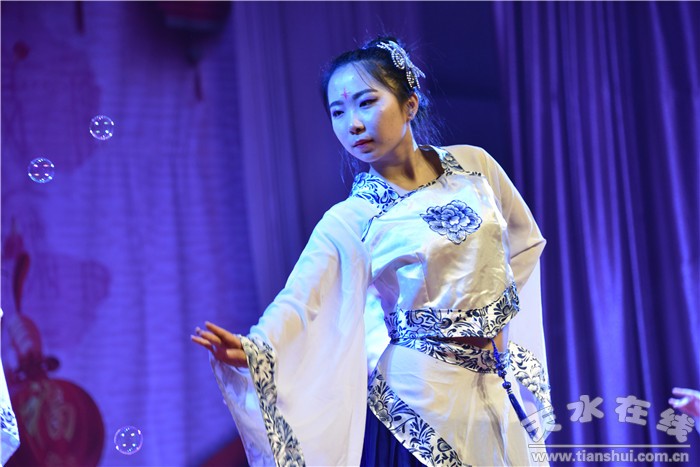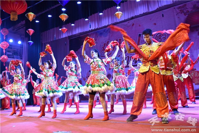 新年晚会在歌伴舞《共圆中国梦》中拉开帷幕,校团委老师带来的二胡独奏《赛马》、歌曲《广岛之恋》,旅游学院表演的礼仪展示、校国旗护卫队倒功操表演《永恒的守护》,天水师范学院学生表演的相声《学富五车》,校广播站诗朗诵《我的祖国》,经管学院舞蹈《中国美》、艺术学院舞蹈《欢聚一堂》、化工学院舞蹈《落花雨》,歌曲串烧《青春修炼手册》、《幸福拍拍手》等,迎得了老师同学们的阵阵掌声,晚会现场气氛热烈。