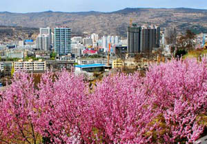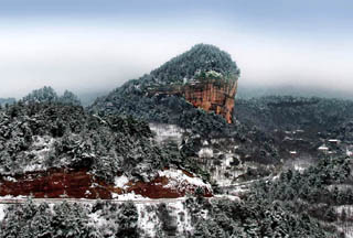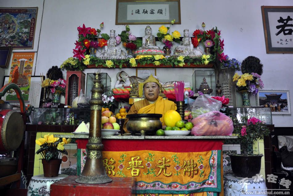 走近高峨雄壮的悬顶式“炳灵寺”山门前,穆穆育经声和播放的梵音从寺院内飘出,使人心静。穿过山门进入寺院,约有16米的正方形大院,有天王殿、钏鼓楼、大雄宝殿,东西两厢为观音殿、诵经堂。“天王殿”殿内的四大天王据僧人讲是“四大金刚”,高大魁梧,威武庄严,眼目炯炯,俯视来往的游人,好像关注着人间的“善恶”真情。“大雄宝殿”坐着三大古佛,两面是神姿各态的16尊罗汉;宽大幽雅的殿堂内摆放着一只只信士诵经念佛盘坐的坐垫,使人联想到人生的生、老、病、死。正好碰见寺院的主持信念法师,我们请她给我们当导游和讲解,她欣然同意。她引我们到“解脱轮”前说:人们只要拨转一圈,就等于给众生念了18个亿的经咒藏在“径轮筒”里,因经咒可以洗刷自己的灵魂,给人一种“消灾解脱”之效。“嘟隆隆”,我们真拨动轮筒转了一圈,感到心里已满足,其实这是给人的一种精神,一种鼓舞。信念法师说,她原在“五台山”修行过,十年前来到这里,听人们说600余年前就建起了寺院,后来被毁,她下决心化缘发起重建,经过集资募捐,新建的寺院又屹立在天水的南大门口。在她的引导下,我们登上了39台阶,便是五方佛塔坪,中间佛塔最大。站在塔坪远眺,对面山峰,恰似一尊睡佛,安详横卧,仰视着蓝的天空;北面一座山又似一头大象,伸长着鼻子去赤峪河喝水,大自然造就了一幅栩栩如生的奇特地理图。随信念法师向南下了30多台阶,走上“莲花桥”,桥下的“放生池”里绿叶衬托着的莲花开放,鱼儿跳跃。回头一顾,约有一长宽12米正方形的蓝色图案的照壁,我们正疑惑,信念法师笑着说:“这是文珠菩萨根本种籽在空中显现的图案,1998年农历六月初六晚9时许,大家刚诵完经,因天气有些热了,便坐在院内,忽天空显现出一幅古建筑群图景,细观像是”炳灵寺“的布局图案,持续了3个多小时,直至11时才逐渐消失,大家高兴地说着菩萨显灵了。可异当时没有照相机留存下来,事后,根据空显现的图案构画出来修了这个照壁,真是个奇观。”我们说这是自然现象的一种巧合,她笑着说:“有这么巧吗?”我们提出疑问,“炳灵”与“冰凌”之称是怎么回事?她又答曰:传说古时此地曾有一棒冰凌四季不化而得其名,其实“炳灵:按佛家之说为“万佛”之意。这座“万佛塔”里就有10808尊小铜佛,据说这座宝塔是甘肃独一无二的。走出“万佛塔”,其中有一块是“无字牌”,什么字也无有,我们疑惑不解,询问信念法师,她一笑扬长而去,留给我们的是猜测不已,有人猜出了“心静”两个字,对与不对,在夕阳西的返回路上,我们还争论不休。