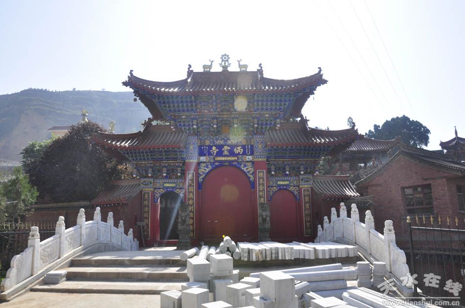 炳灵寺,位于甘肃天水市城南十公里处,初建于元代,期间岁月流逝,社稷废兴,初时烟火已散,早间信士缘疏,塔院毁于风雨久矣。然佛种不失,菩提本在,岂因数百年之沉沦与众生相绝哉?是以公元一九九三年,有僧名信念,自五台来秦州,认定宗旨,始筹资重建焉。今已规模颇具,引人入胜。寺院依山而建,渐山势而升,依林麓而延。寺内有大殿五座,塔院三处,寮房三十多间。