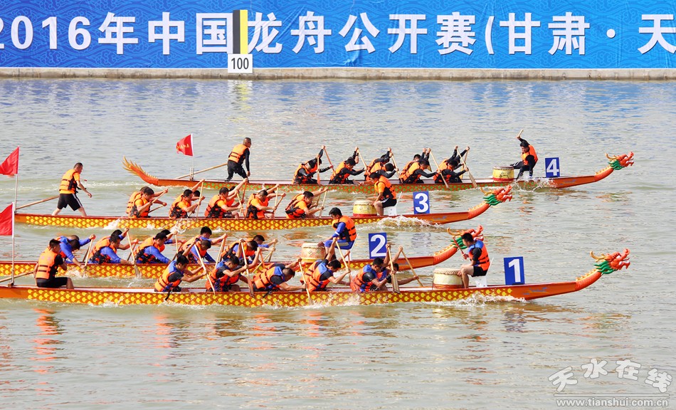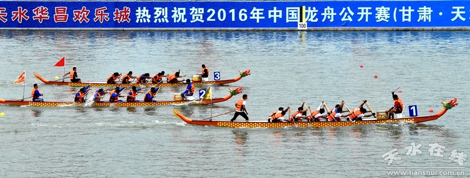 ▲图为2016年中国龙舟公开赛(甘肃·天水·麦积站)比赛现场