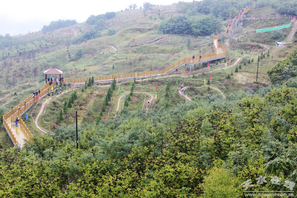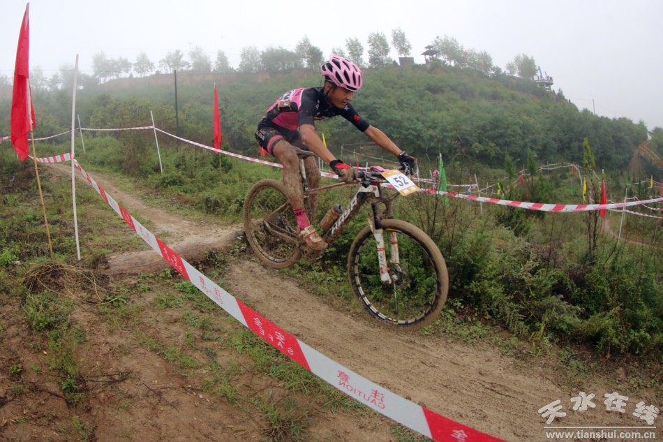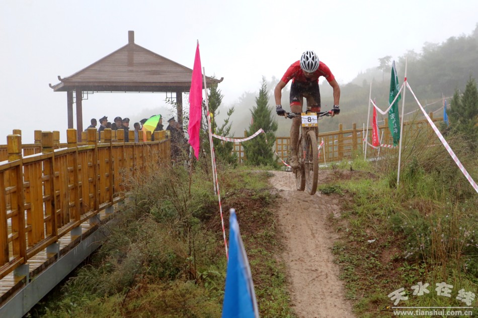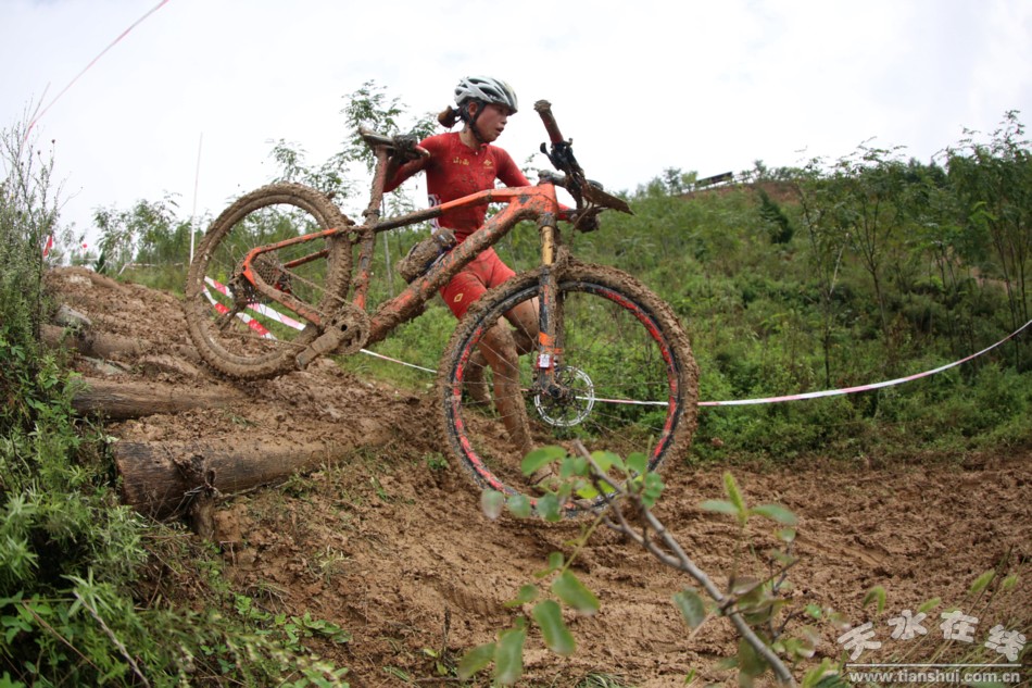 为期两天的赛事将进行男子、女子公开组,男子、女子专业组,男子大学生组,男子体验组,男子越野淘汰组共计7个项目的骑行比拼,以满足不同人群的参赛需求。据悉:天水赛道布局在梯田区域内,周边山体坡度适中,植被茂密。赛道长度4.5公里,整条赛道铺设三合土,海拔累计爬升不高,难度主要体现在梯田断层下坡既多且陡上。纯木桩下坡、木桩石头下坡、石头下坡……各种下坡考验车手技巧与速度的平衡。当然平路赛段也不轻松,作为国家级赛道,石头路、石头障碍路、飞包、连续的小抬压包,随时随地都在考验车手的控车技术,赛道路窄,弯道很多,所以前段卡位至关重要,因为想在这条赛道超车并不容易。为了避免打滑,赛道上多处上坡都做了石板铺设。赛段的最后还设置了一个连续爬坡路段,距离约200米。在经过赛道全线的“折磨”后,这200米对爬坡型选手将是置关重要的节点。而比赛当天的降雨,则让难度陡升。