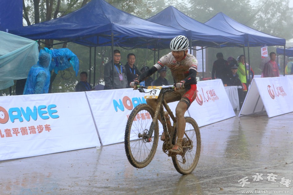 9月16日,中国山地自行车公开赛天水麦积站在麦积区翠山梁鸣枪开赛。雨水、汗水、泥水汇聚成喜悦的泪水和胜利的酒水,来自国内外的优秀运动员用自己的激情、耐力、技能与智慧,为天水人们奉献了一场雨中速度与激情的视觉盛宴。