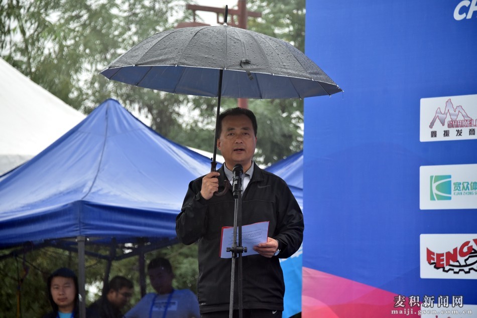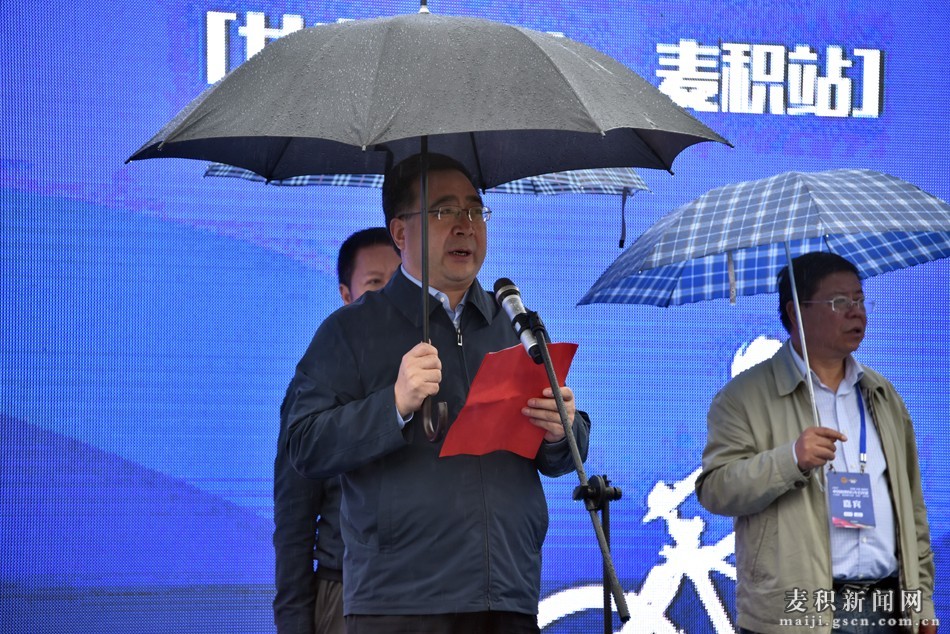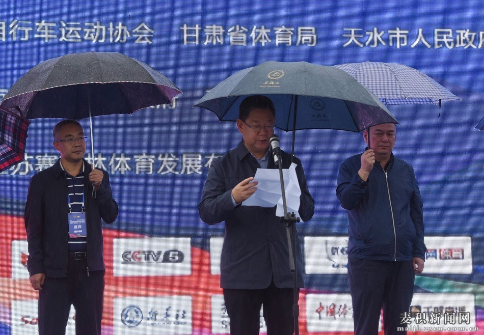 市委书记王锐宣布2017年中国山地自行车公开赛(甘肃·天水·麦积站)开幕。 副市长张建杰讲话。麦积区委书记张智明致辞,麦积区委副书记、区长成少平主持开幕式。