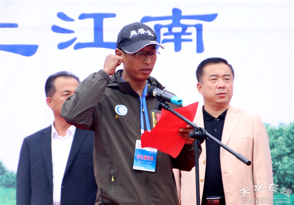 (国家垂钓一级裁判员朱军代表全体裁判员宣誓 )