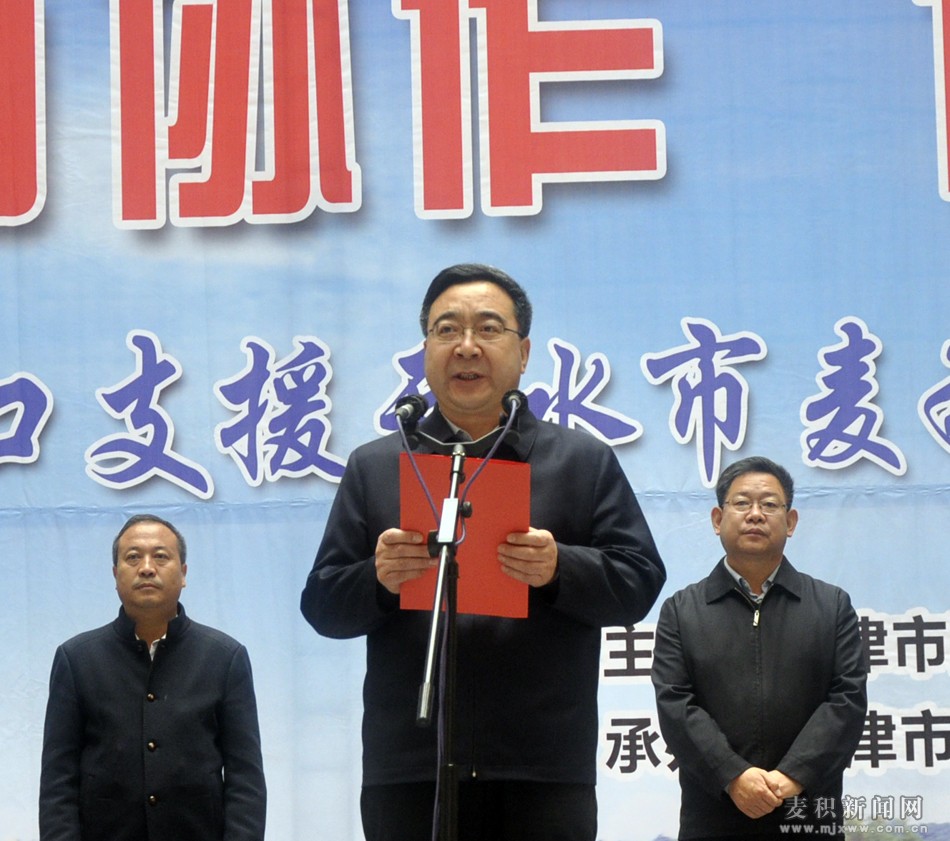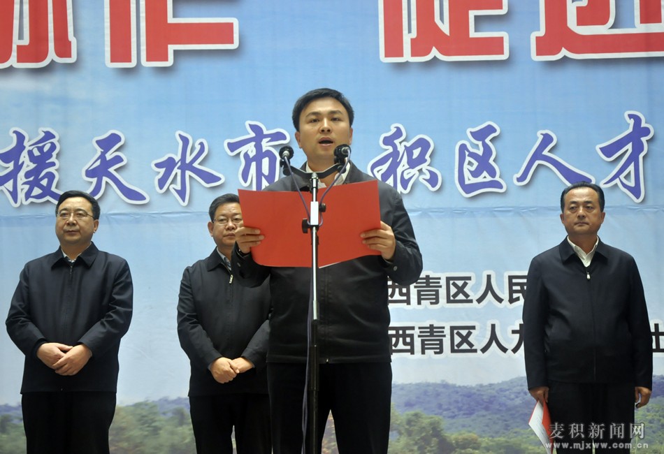 天水市副市长张建杰讲话并宣布天津市西青区和天水市麦积区人才招聘暨劳务洽谈会开幕;天津市西青区副区长方伟讲话;麦积区委书记张智明致辞;麦积区委副书记、区长成少平主持开幕式。