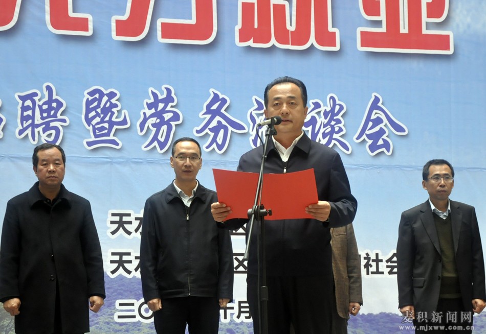 张智明在致辞中说,近年来,麦积区高度重视就业工作,坚持把扩大就业摆在全区经济社会发展的突出位置,全面落实各项就业政策,着力改善就业环境,积极搭建就业平台,拓宽就业渠道,精准开展劳务技能培训。此次人才招聘暨劳务洽谈会的举办,为用工单位和求职者搭建了一个双向交流平台,对实现城乡富余劳动力就业,进一步深化东西扶贫协作交流,加快我区脱贫攻坚步伐,必将起到积极的推动作用。希望各用工单位加大自身的宣传推介力度,尽量降低用工门槛,吸引更多的求职者到西青区就业;希望广大求职者珍惜机会,积极洽谈应聘,力争找到适合自己的工作岗位,实现就业愿望。
