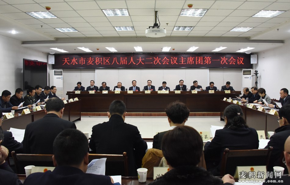 12月26日下午,天水市麦积区第八届人民代表大会第二次会议召开主席团第一次会议。会议应到主席团成员45名,实到43名,合于法定人数。贾应珍主持会议。
