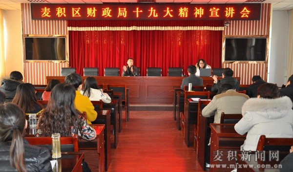 为了进一步加深对党的十九大精神的理解,将十九大精神转化为推动财政规范化、精细化管理的有效动力,12月28日,麦积区财政局召开党的十九大精神宣讲会,邀请区委党校讲师刘楠对全体干部职工宣讲十九大精神。