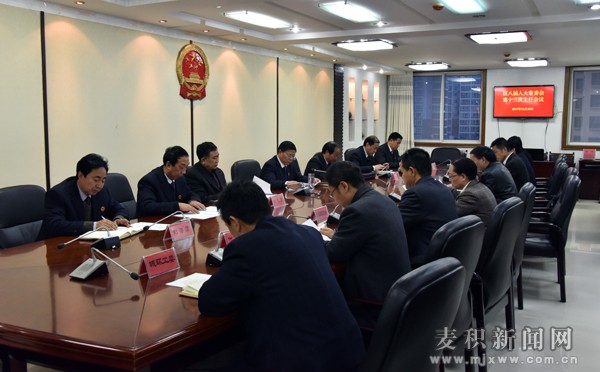 12月29日,麦积区八届人大常委会召开第十三次主任会议。区人大常委会主任贾应珍主持会议,区人大常委会副主任石胜利、赵双喜、吴建武、方明太、刘海鹰、窦顺良出席会议。