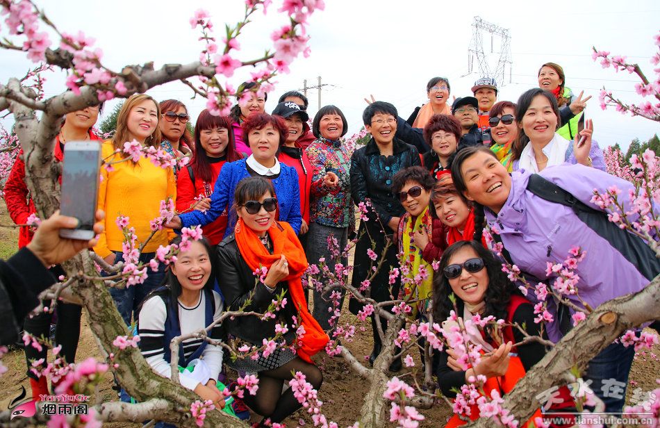 在桃园里,还有一些来自白银的游客,通过交谈得知,她们是看到了央视7套的宣传片,被秦安桃花的壮丽美景深深吸引,于是有人在QQ群里开始组织,大家纷纷报名,最终商定在这个周末来秦安赏花。