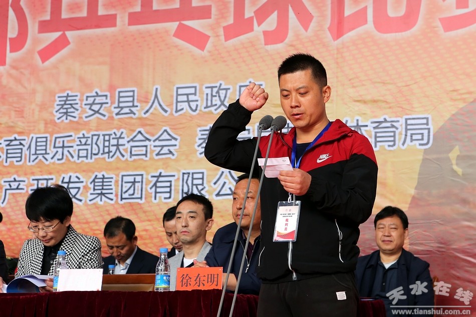 县委副书记裴贵军主持开赛仪式。仪式上,县委副书记、县长程江芬,市体育局局长黄啸分别作了致辞;为本次大赛顺利举办及天水市青少年体育俱乐部联合会的发展作出了积极的贡献的四家单位授予大赛特别贡献奖;运动员和裁判员代表分别作了宣誓;原国家队运动员谭瑞午宣布比赛开幕!