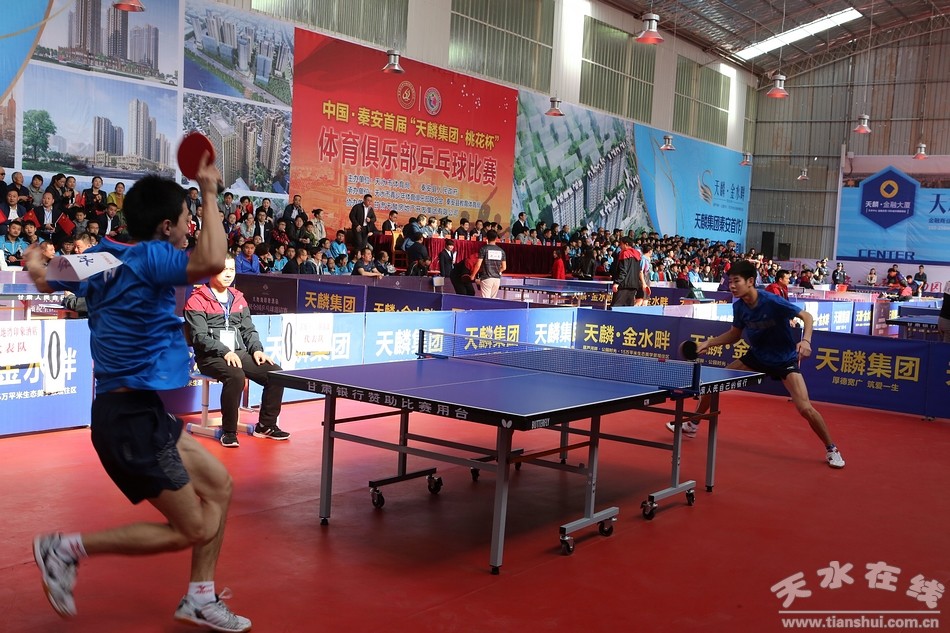 据悉,中国·秦安首届“天麟集团·桃花杯”体育俱乐部乒乓球比赛由天水市体育局、秦安县人民政府主办,天水市青少年体育俱乐部联合会、秦安县教体局承办,甘肃天麟房地产开发集团有限公司协办。此次赛事是秦安县截止目前举办的参赛运动员水平最高、参赛范围最广的一次乒乓球运动比赛,共有来自北京、河南、黑龙江、辽宁、河北、山东、河南、山西、陕西、湖北、甘肃等11个省(市)以及新加坡等国家的40支代表队150余名乒乓球运动员参加比赛,参赛队员中有一部分是参加过世界杯、残奥会、世乒赛、亚运会、全运会、青运会、大运会、甲A及甲B联赛等比赛的高水平运动员,赛事水准高,规模大,影响力强,他们将在秦安县展开为期3天的激烈角逐。