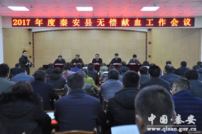 12月21日,秦安县召开2017年无偿献血工作会议,会议由县政府副县长于剑锋主持,县委常委、宣传部长徐东明出席会议,各镇、县直各部门、驻秦各单位负责人及无偿献血志愿服务者120余人参加会议。