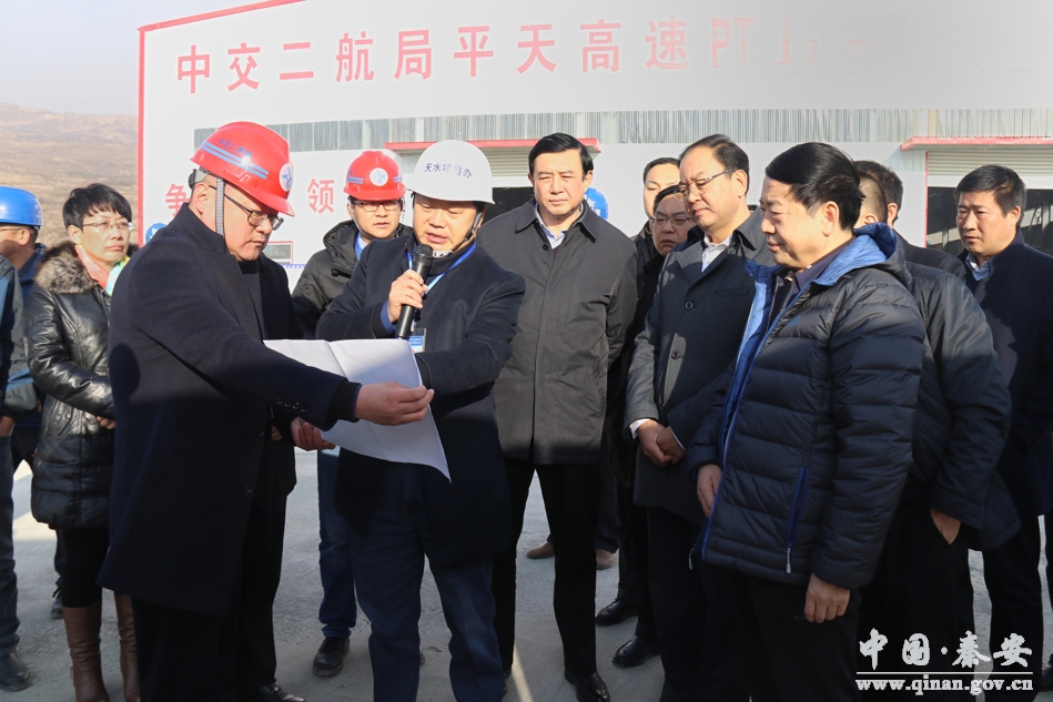 12月23日,省政协副主席张世珍带领省公航旅集团、公建集团和省直有关部门负责人,督查调研天平高速秦安段建设情况。天水市委常委、常务副市长赵卫东,市政协副主席唐宏伟,市发改委、市交通局,秦州区、麦积区、秦安县领导,天平高速项目办负责人一同调研。