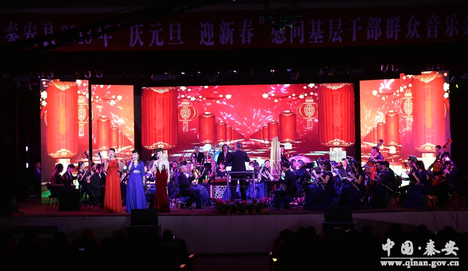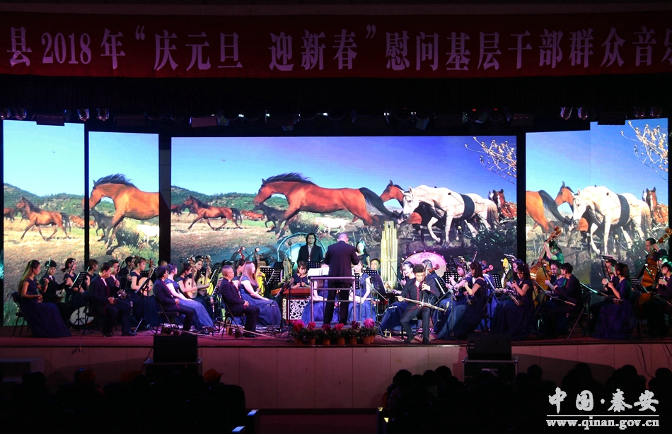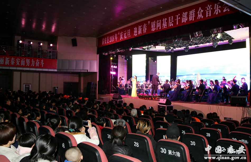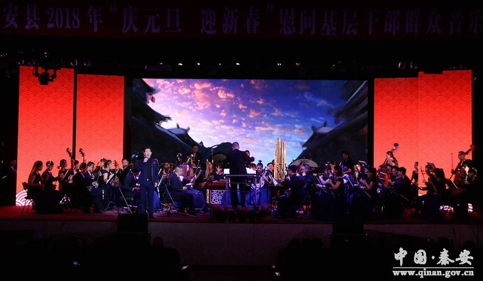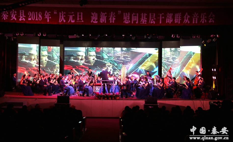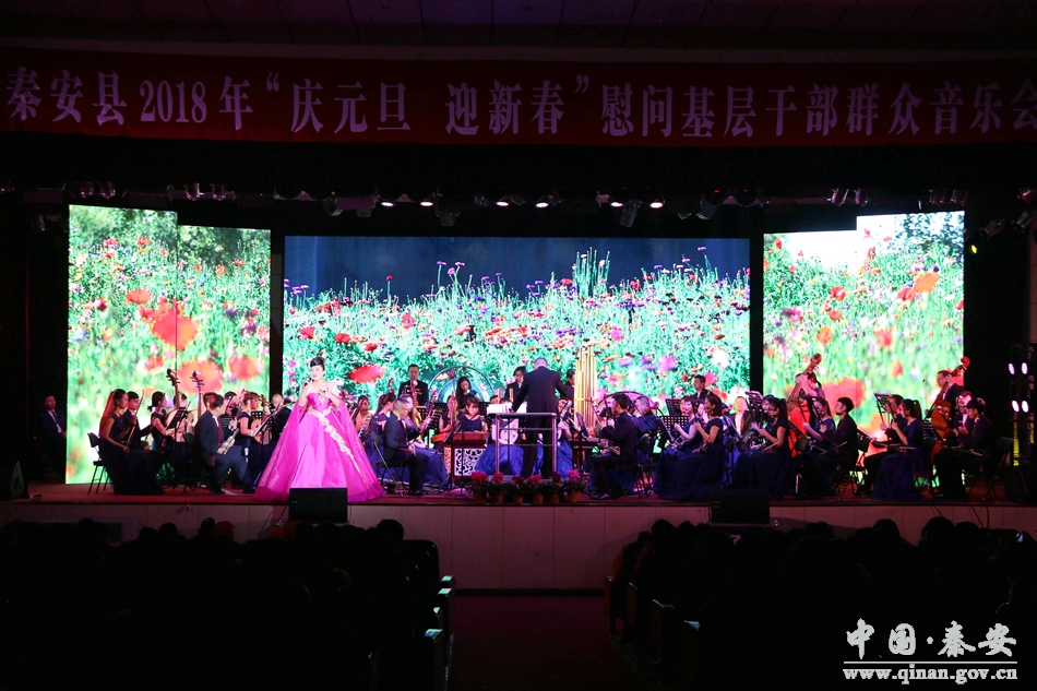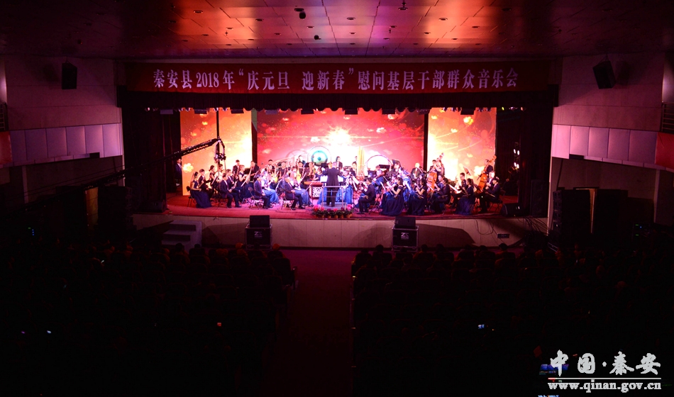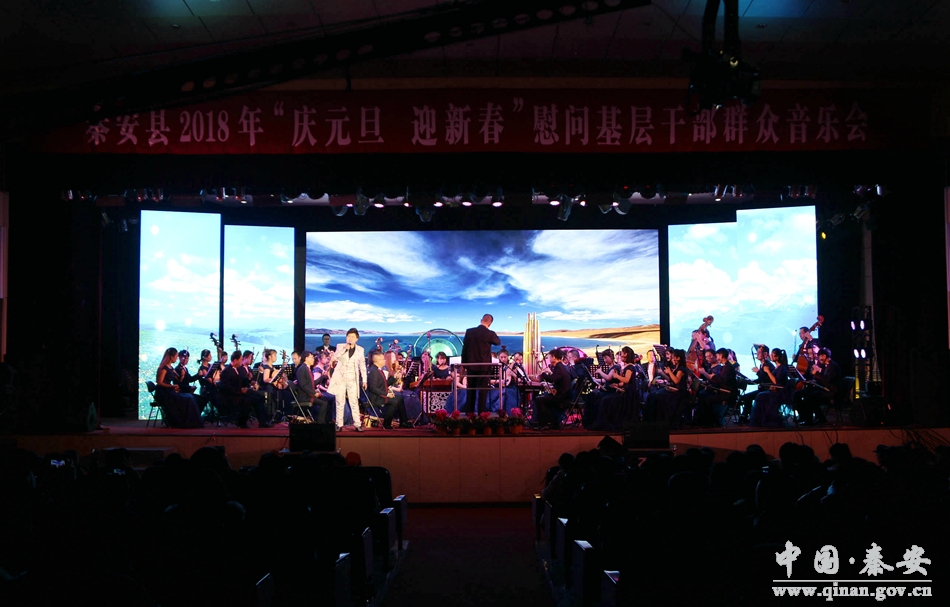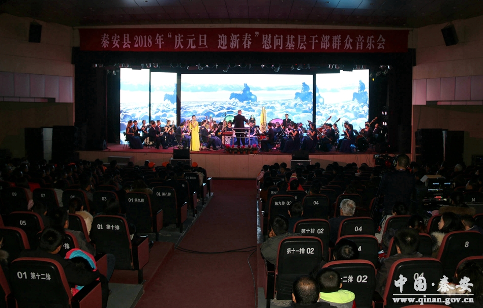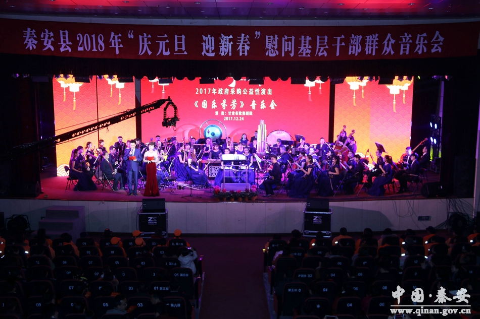 和谐颂盛世,欢歌庆丰年。12月24日晚8时,秦安县行政中心二楼礼堂座无虚席,灯光辉映。由中共秦安县委、秦安县人民政府主办,中共秦安县委宣传部、秦安县文化广播影视局承办,甘肃省歌舞剧院民族交响乐团演出的2018年“庆元旦 迎新春”慰问基层干部群众音乐会在这里隆重开演。这也是一场由政府采购的公益性演出。